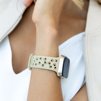 Enhance your Apple Watch with the Paw Silicone Band, designed with a unique perforated pattern for superior breathability and comfort. This band, made from top-quality silicone, offers flexibility, durability, and is easy to clean, making it perfect for daily wear and active lifestyles. Compatible with all Apple Watch models.